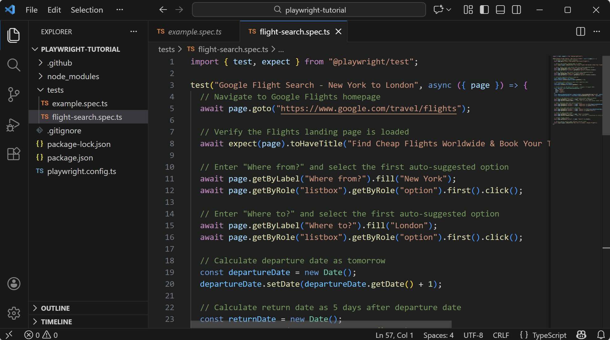 Name the file flight-search.spec.ts and press Enter.